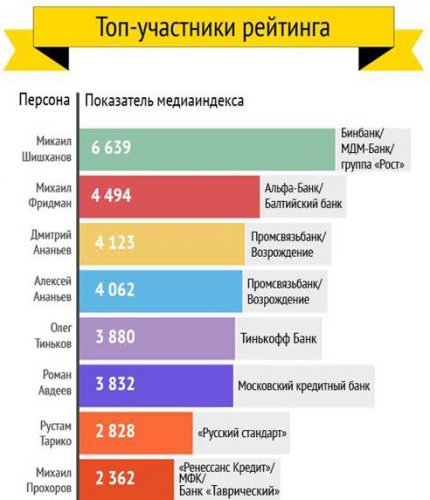 Основной владелец МКБ занял в рейтинге 6-е место, обогнав по популярности Михаила Прохорова и Рустама Тарико.