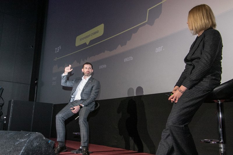 Руководитель инвестиционных продуктов для бизнеса в Тинькофф Ольга Добродомова и управляющий директор по валютно-денежному рынку Московской биржи Сергей Титов во время своего выступления также подчеркнули масштаб конференции и признались, что впервые выступали под светом софитов на сцене кинотеатра, как настоящие звезды.