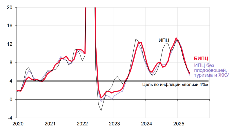 Согласно же апрельскому прогнозу Банка России с учетом проводимой денежно-кредитной политики годовая инфляция вернется к целевому показателю 4% в 2026 году. По итогам этого года согласно среднесрочному прогнозу ЦБ ожидает инфляцию на уровне 7–8%. При этом, как отметил на сессии в Новосибирске директор департамента денежно-кредитной политики банка, «инфляция по году может быть ближе к нижней границе диапазона». В конце июля Банк России будет актуализировать прогноз.