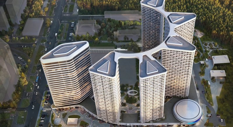 ЖК Родина у метро Новопеределкино разделяется на два сегмента: пять высоток на 31 этаж в виде треугольников, соединенные стилобатом и воздушным мостом, и отдельное офисное строение, похожее на ромб. Первая серия домов будет готова к концу 2027 года, а вторая — к концу 2028 года. Офисное здание откроется в начале 2029 года. На территории появятся детсад на 125 малышей, открытый ко-воркинг, гастрономический бульвар, центр киберспорта, развлекательные и спортивные зоны, площадки для детей. Здания украсят металлом, стеклом и белым бетоном. Пространство разобьется на общественные и частные зоны с зелеными насаждениями, включающими лиственные и хвойные деревья.